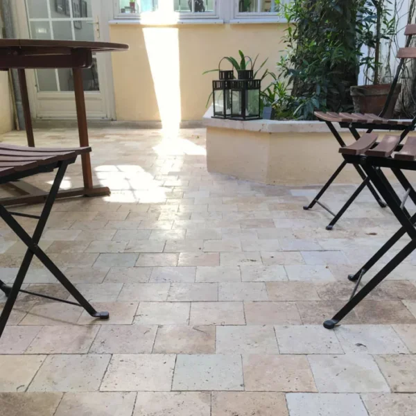 Si votre cœur ne balance pas pour les pavés en pierre naturelle calcaire, nous mettons également à votre disposition des pavés en travertin, une roche sédimentaire calcaire très solide et très poreuse, ce qui lui confère des propriétés antidérapantes, parfait pour une terrasse. Découvrez le Pavé en Travertin Brun prévu pour l’extérieur, à la couleur chaleureuse et à l’aspect vieilli et authentique. Nous vous proposons également le traditionnel Pavé en Travertin, à poser pour une terrasse ou un jardin. C’est un produit aux nuances ensoleillées et à l’aspect noble et élégant.