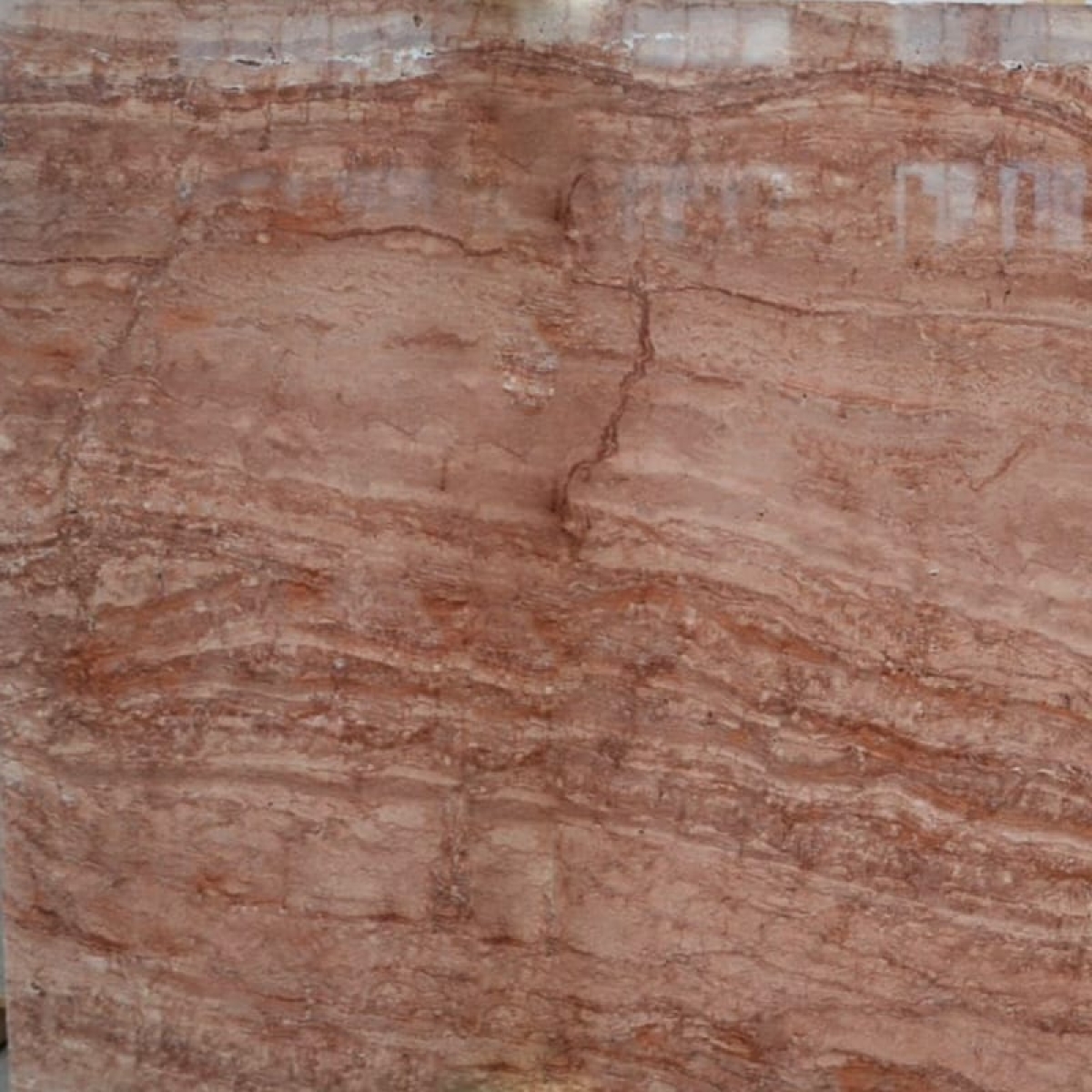 Traditionnellement, le travertin est un calcaire de couleur « beige ». Cependant, lors de l’extraction de ces pierres, il arrive que certains blocs de pierre soient rouges. Ces blocs de pierres rouges extraits sont alors utilisés pour les dalles de ce travertin rouge. De premier choix, les dalles de ce travertin peuvent comporter quelques aspérités¹ en surface. Néanmoins, ces aspérités peuvent être comblées lors du jointage du sol.