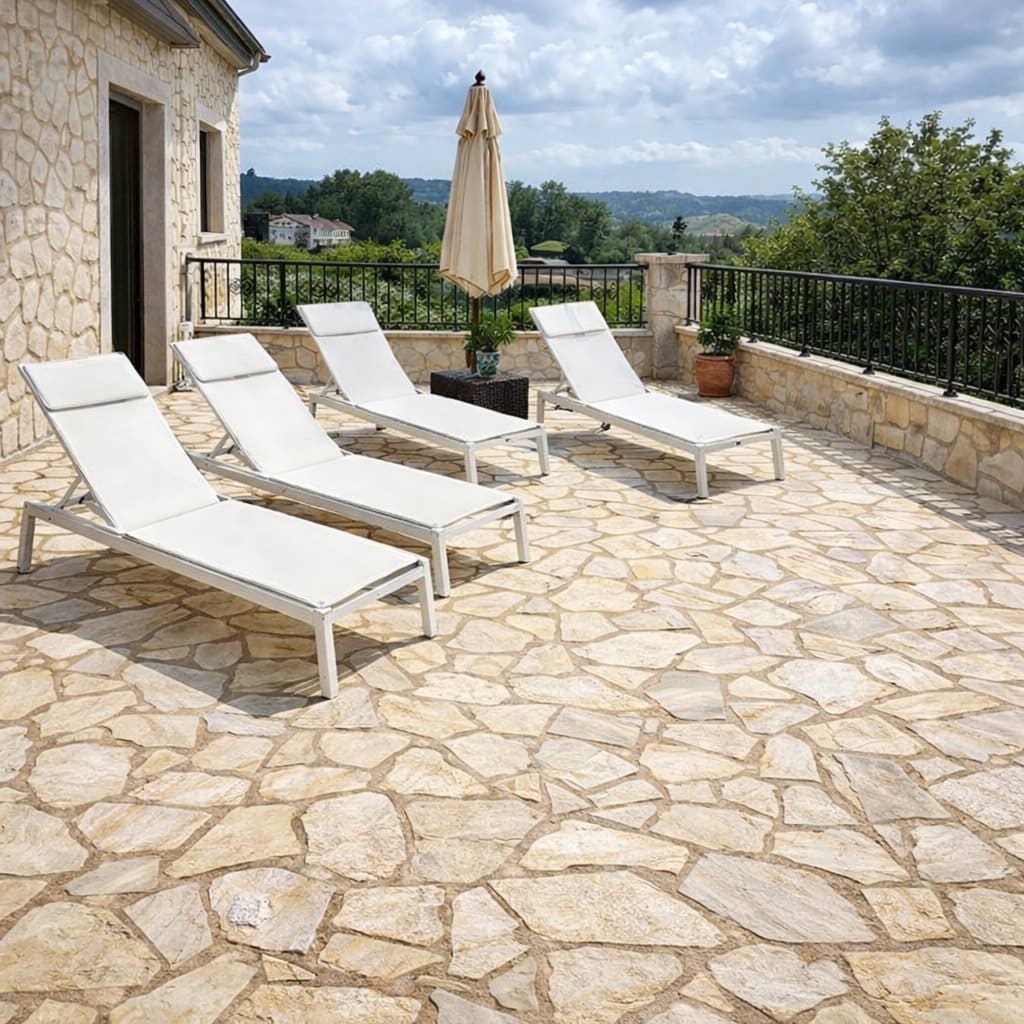 Ainsi, ce dallage en marbre jaune clair apporte lumière, authenticité et raffinement à vos sols. Durable et esthétique, il constitue une solution idéale pour créer des extérieurs uniques, chaleureux et intemporels.