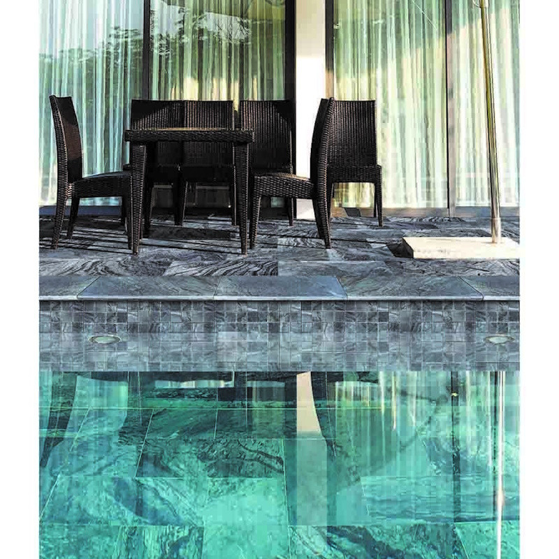 Offrez un charme incontournable à vos contours de piscine grâce à la margelle en ardoise grise.