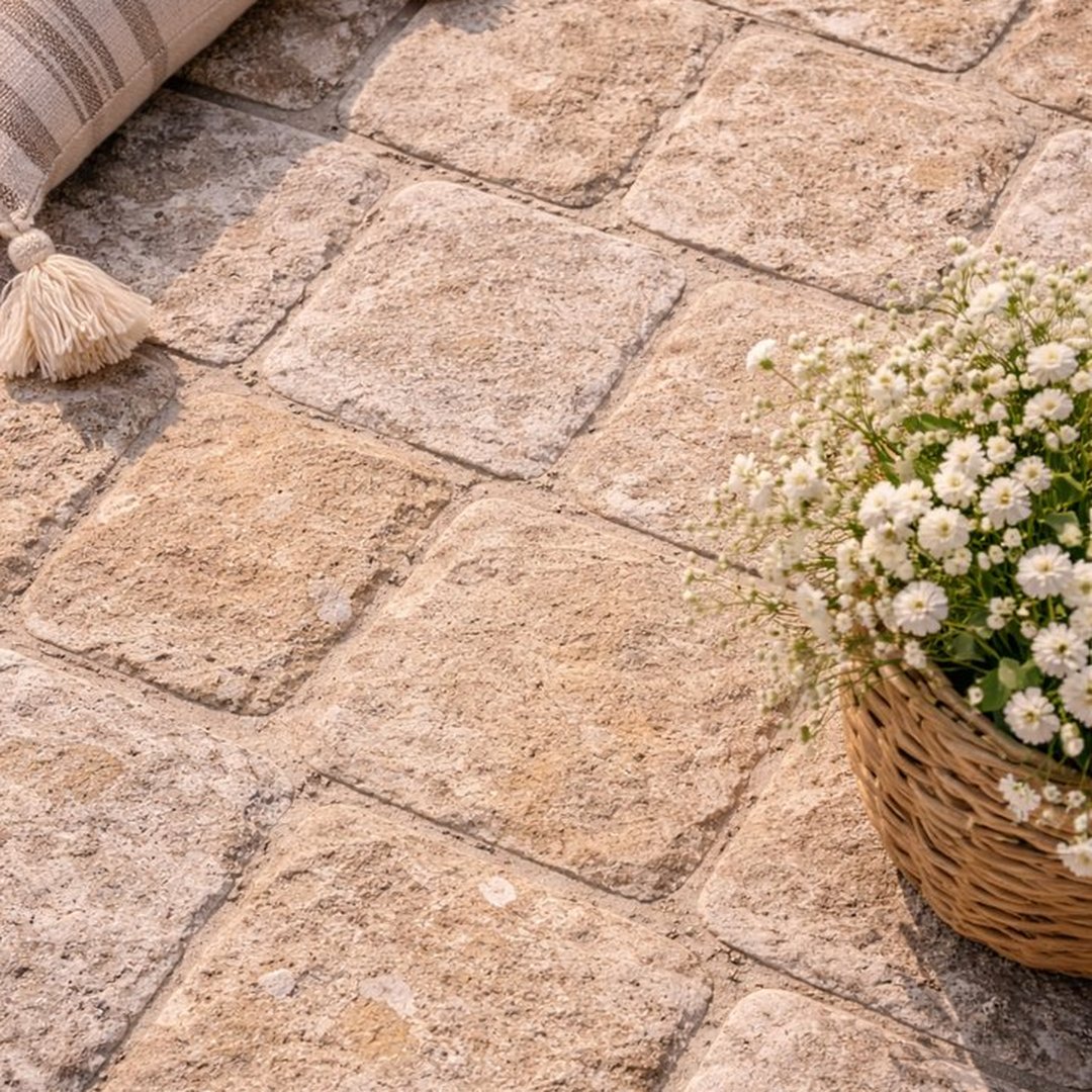 Profitez de la beauté naturelle du pavé calcaire Sinai Pearl pour aménager vos espaces extérieurs avec élégance.