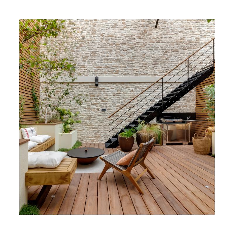 Nous avons fais un mélange de plusieurs teinte et le résultat est sublime, une partie des pierres ont été posées pour la cuisine extérieur et l’autre partie dans l’escalier de l’intérieur, pour faire le rappel.