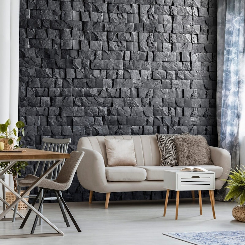 Les plaquettes de parement imitation pierre Dana noir effet pierre en béton sont idéales pour apporter une touche de modernité à vos murs, tant à l’intérieur qu’à l’extérieur.